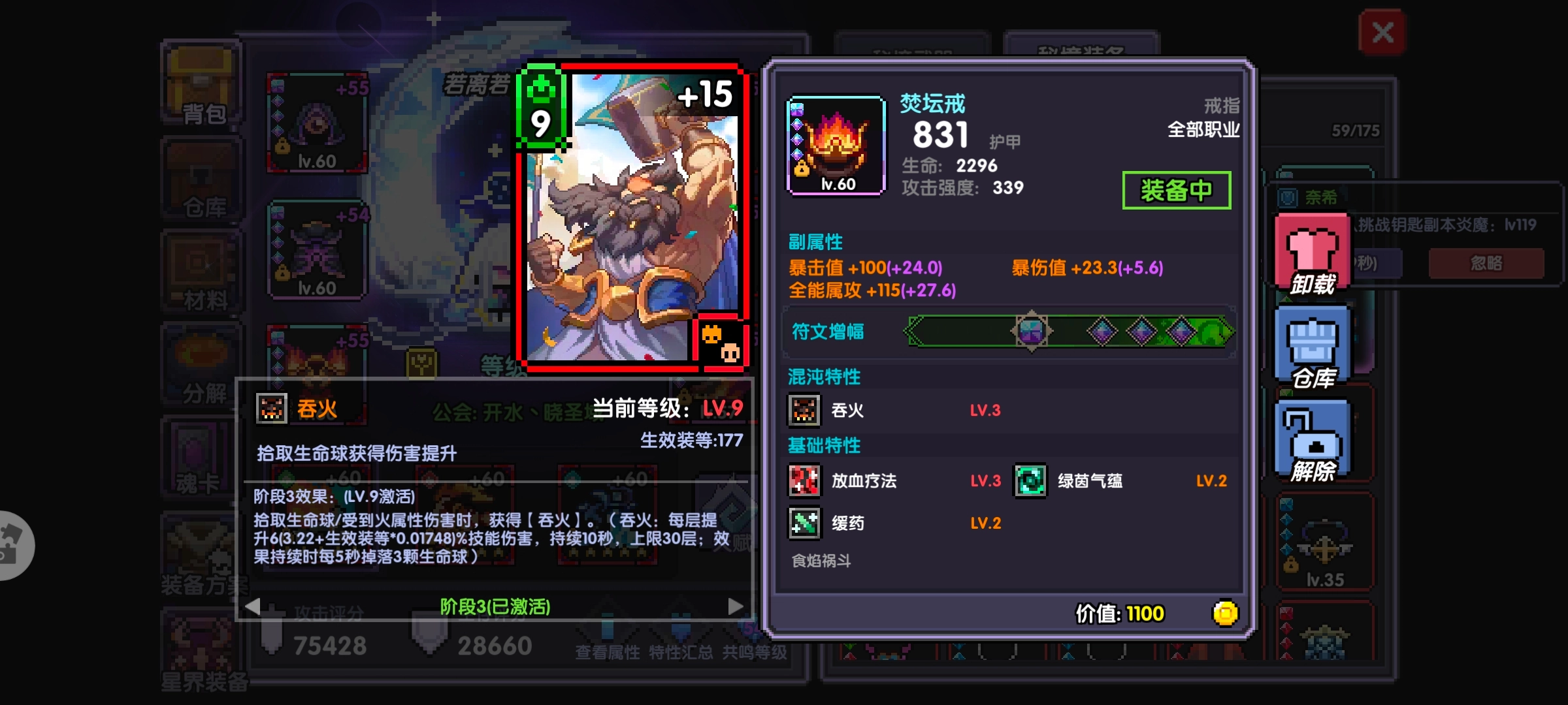 在武器符文对应出来之后选择将二环狼换成血环来更进一步。