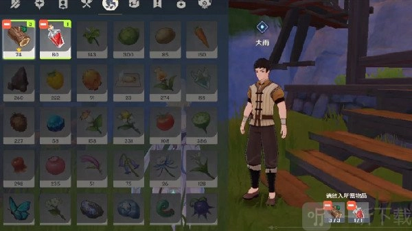 路爷与若心前辈向咱们举荐了大雨,大雨也应允跟咱们一同去搭建新戏台。只是呢,大雨目前手头的活儿尚未完成,这就需要咱们在原地拿出三根松木以及一份红染料。