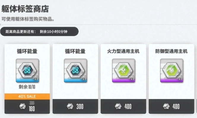在游戏里,不同稀有度的角色躯体转化出的躯体标签数量各有差异。R级角色躯体可转化为150个躯体标签,SR级角色躯体能够转化成200个躯体标签,而SSR级角色躯体则能转化出6000个躯体标签。这些躯体标签用途重大,能在躯体标签商店中兑换各类珍贵物品,像循环能量、主机以及铸模等都在可兑换之列。就当下的游戏体验来看,循环能量与主机这两种资源在各类活动中都能获取到。因此,对于初入游戏世界的萌新玩家而言,用躯体标签来兑换铸模是较为明智的做法。