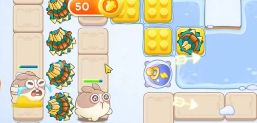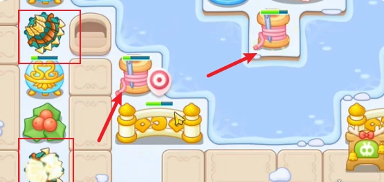 1、在胡桃夹子第19关,一开始先在左侧放置两个弓箭炮塔,这些炮塔要优先对敌人展开攻击,其次再去对付毛线障碍物。