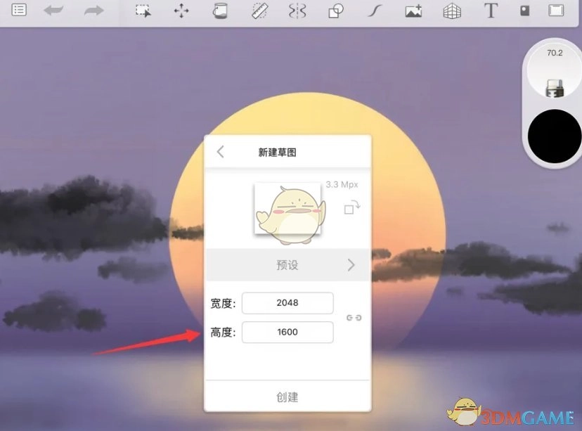 3、把画布参数设置妥当后,点击“创建”就可以了。