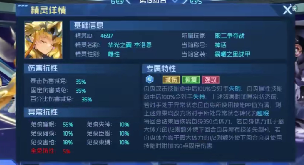 华光之翼杰洛恩具备基础被动效果:自动攻击技能一旦命中,对手目标必定直接进入睡眠状态;而自身属性技能命中时,能使对方进入失神状态。这两种效果能够叠加。