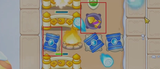 1. 在胡桃夹子第21关,于左侧放置两个蓝桶炮塔。