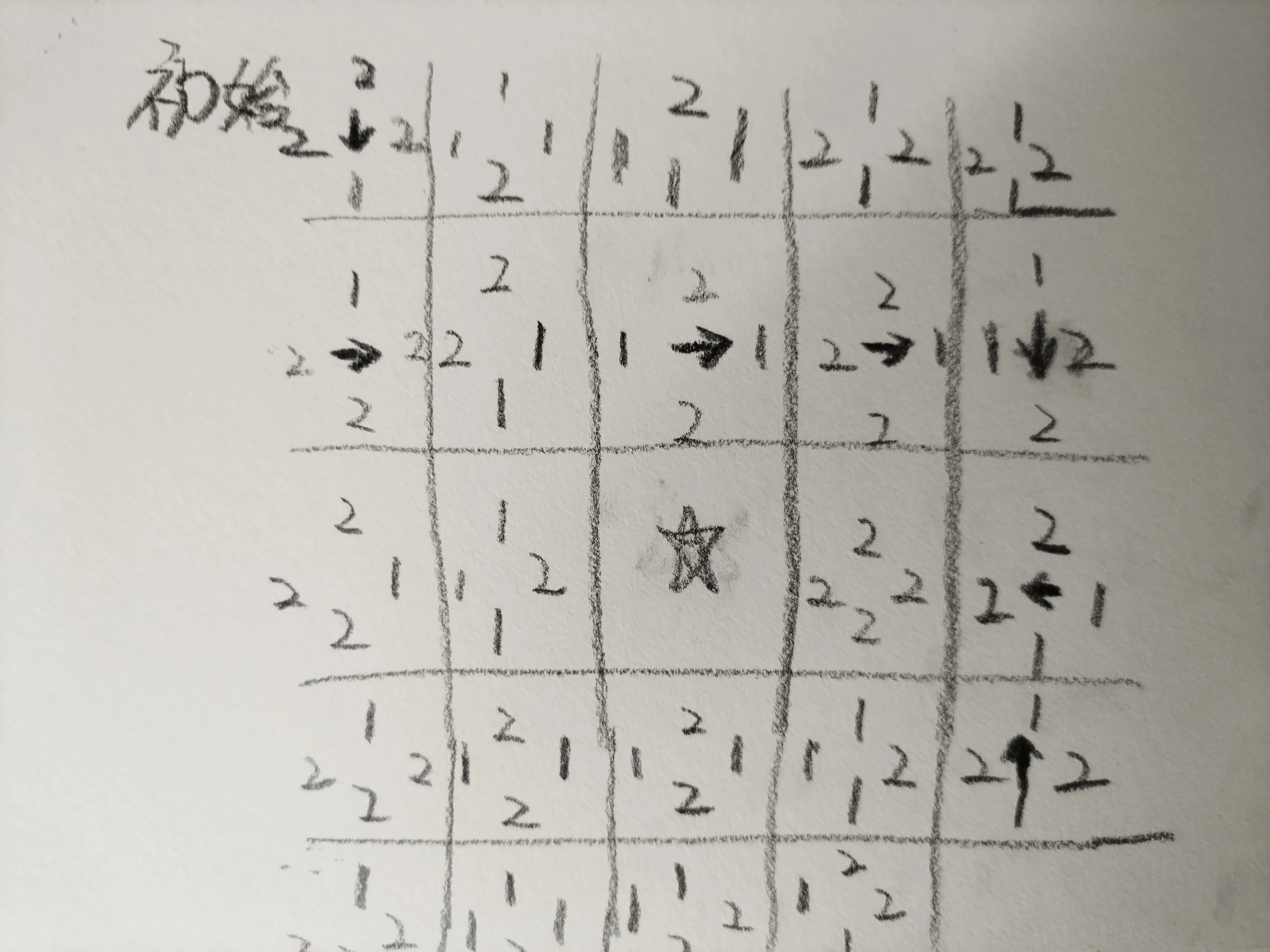 2、蓝色表示朝着此方向前进1格,黄色表示前进2格。