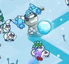 <打法介绍>:一个技能,全屏aoe,注意躲避。普通平a是扔小雪球,不痛,可以硬抗。