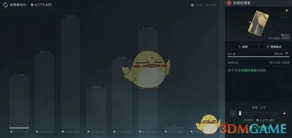 2、我们得在游戏的交易行里,紧盯想买的卡,多次进行刷新操作,同时留意其柱状图。
