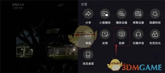 3、在弹出的设置界面里,找寻并点击“投屏”选项。