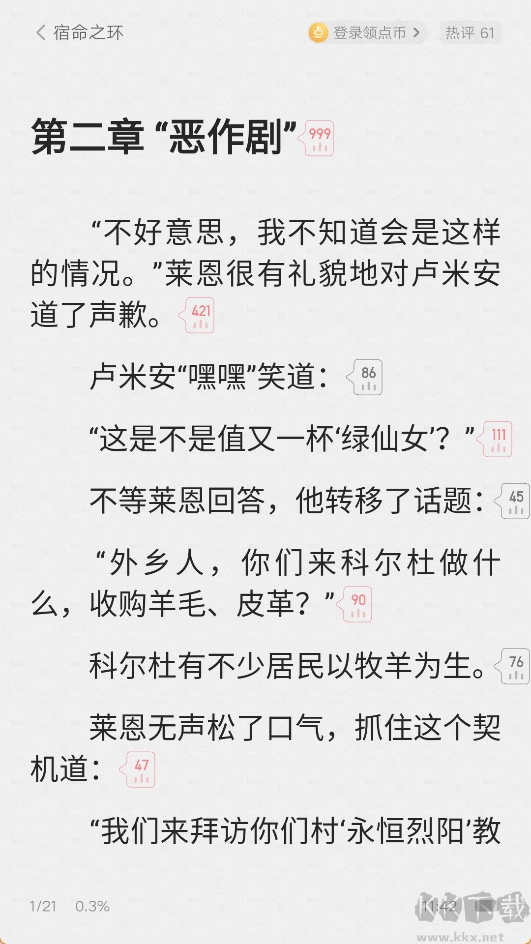 2. 在阅读界面里,点击屏幕正中间的部位,就会弹出工具栏。