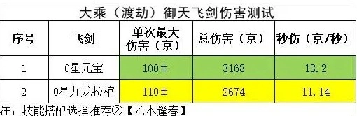 在飞剑选择上,采用0星九龙拉棺与0星元宝展开测试,相关数据如下: