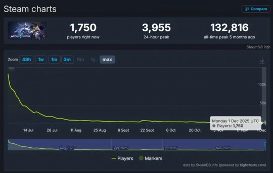 《解限机》是西山居推出的科幻机甲题材游戏,由郭炜炜亲自带队研发,据了解该项目筹备时长近10年,期间历经4次反复立项,此前曾获得不少关注。游戏于今年7月正式上线,不过上线后的表现未达预期:首日在线人数为13.28万,但后续数据下滑明显,近期PCU已降至约2000人。在口碑方面,Steam平台上该游戏已有2.6万条评测,好评率却仅为60%左右,整体评价较为普通。