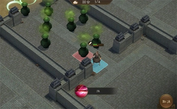 107级游历玩法中疏通道路的规则:这次推罐子环节,我方拥有两个技能——普通技能能推动一格距离,怒技可推动两格距离,另外也能通过普通攻击击碎罐子。