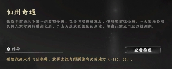 仙洲地宫解谜之一:炎鸿铸剑。第一步,我们前往云潇山庄,在庄内四处逛逛,便能触发首个剧情。剧情中有人提及金麟客获得了一块能打造神兵的石头。接着,我们去寻找此人,金鳞客位于云潇山庄门口的路边(702,565) 。找到他后,他会给予你石头——琉薪岩,这便是一条关键线索。随后,拿着琉薪岩去找云潇山庄的铁匠铺老板(795,436),老板会告知你一份证词。之后,在小镇里与各个NPC进行互动,总共能获取四份证词。在云潇山庄的山上(可通过地图检索NPC),有个燕×× ,靠近他就会触发剧情,他企图抢夺你的琉薪岩,将其打败后可得到一把宝剑,经了解这就是郁命疏的宝剑。整合所有线索,推理成功后,依照提示,再次去找铁匠铺老板(795,436),他会帮我们重铸宝剑——阳焱。至此,获得了一把剑,而这仅仅只是仙洲奇遇的前置部分。