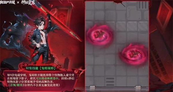 五代电磁皮肤“无间鬼眼”是《向僵尸开炮》和《神秘复苏》的联动内容之一,它以《神秘复苏》里的角色“杨间”为原型打造,皮肤附带专属技能“鬼眼凝形”——每释放9次电磁穿刺,鬼眼就会睁开扫视全场,随机将6到10个敌方目标拖入虚空,使其无法移动或被选中,效果持续3秒;目标回归时还会承受高额伤害。不少玩家都好奇这款无间鬼眼的强度如何,因此下面小编为大家带来五代电皮无间鬼眼的强度解析,希望能帮你形成大致的判断。