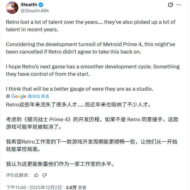 在2023年收获大量好评的《Metroid Prime Remastered》推出后,今年该系列再添新作《银河战士Prime 4:超越未知》。不过,受漫长且波折的开发过程以及外界不少质疑的影响,这款最新作品似乎没能满足玩家与媒体的普遍期待。