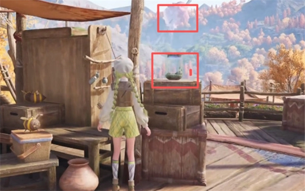 3、艾拉姆姆身旁的木箱上放着一个罐子,本次任务要求透过这个罐子完成错位拍摄。