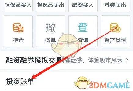 3、在融资融券页面,只需点击投资账单就行。