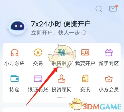 2. 在首页点击融资融券选项。
