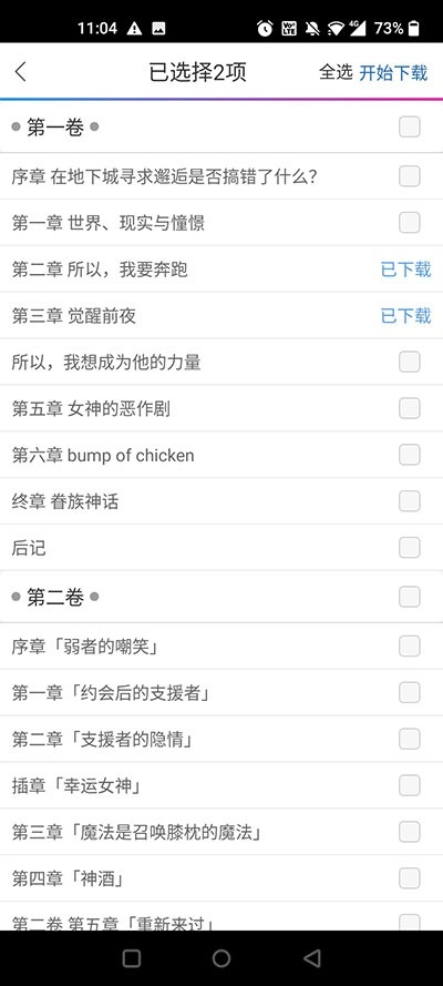 4、选好内容后,点击开始下载按钮,就能把选中的小说完整下载下来了。