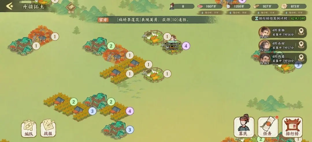 赛季第二周将开启5级及以上的资源点,各位大佬需在第二周前把能开垦的地块基本完成开垦,以便参与高级资源点的争夺。