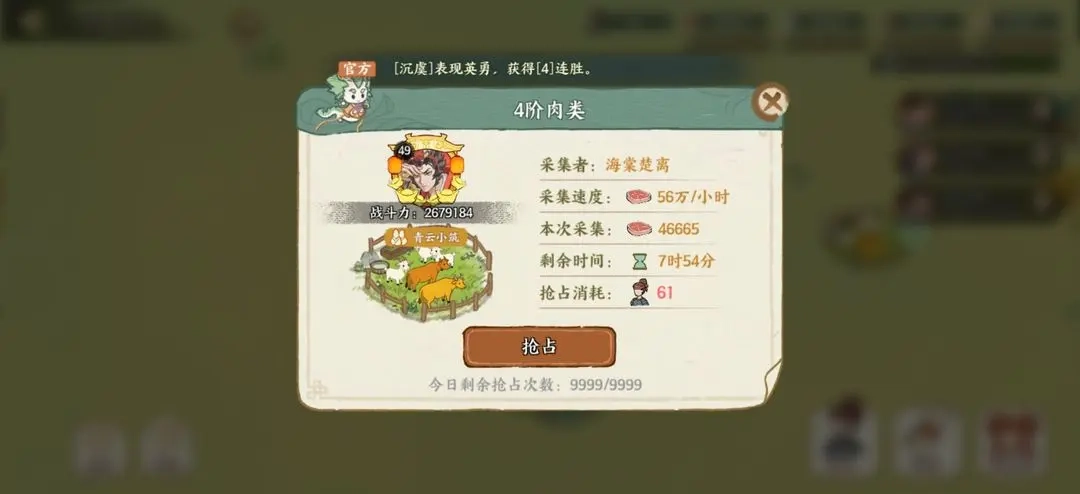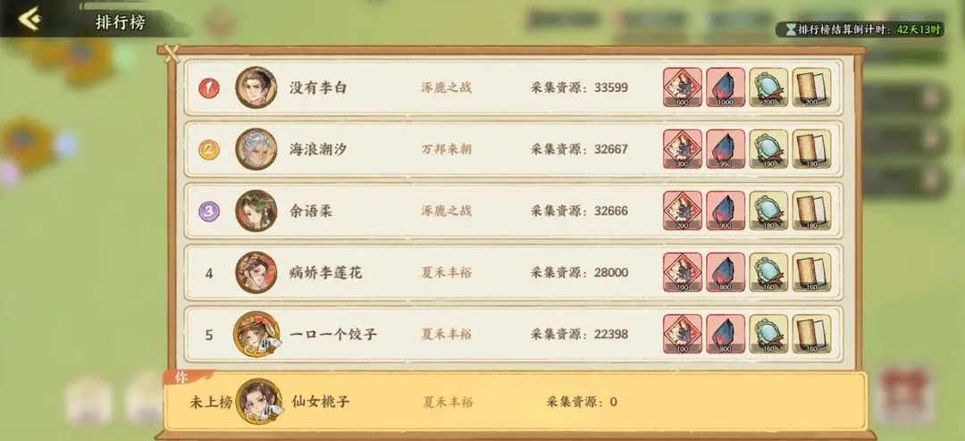抢夺时可获得他人已采集资源的一半,这些都与排行榜有关。