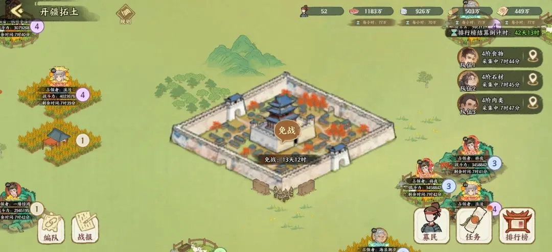 在《华夏绘世录》的开疆拓土玩法里,预备兵是争夺资源与地盘时的关键所在。平民玩家和资深玩家在这里走出了完全不同的发展路子:前者得仔细盘算,把有限的兵力用在建筑工艺升级和占领中低阶资源点上;后者则要主动扩张,去争夺高阶资源和排行榜上的优势。摸透赛季每个阶段的资源开放节奏和攻防策略,才是赢下这场较量的核心关键。