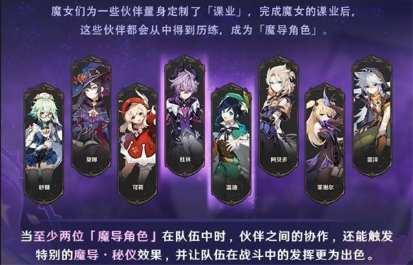 在完成“魔女的课业”相关内容后,对应的角色会进入“魔导角色”状态,其强化能力也将随之解锁。若队伍中存在至少两名魔导角色,还可激活额外的魔导·秘仪效果,为整个团队带来强化增益。