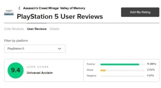 玩家们的兴奋情绪现在在油管上随处可寻,不少博主都上传了对这款DLC的热情好评。在评分网站Metacritic上,该DLC的PS5版本当前玩家平均评分达到了9.4分(满分10分)。