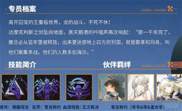 《龙族:卡塞尔之门》将于11月26日上线全新限定UR伙伴“零号”,许多玩家都好奇这位新角色的属性究竟如何,接下来小编就为大家简单介绍一下零号,感兴趣的玩家不妨来了解一下。