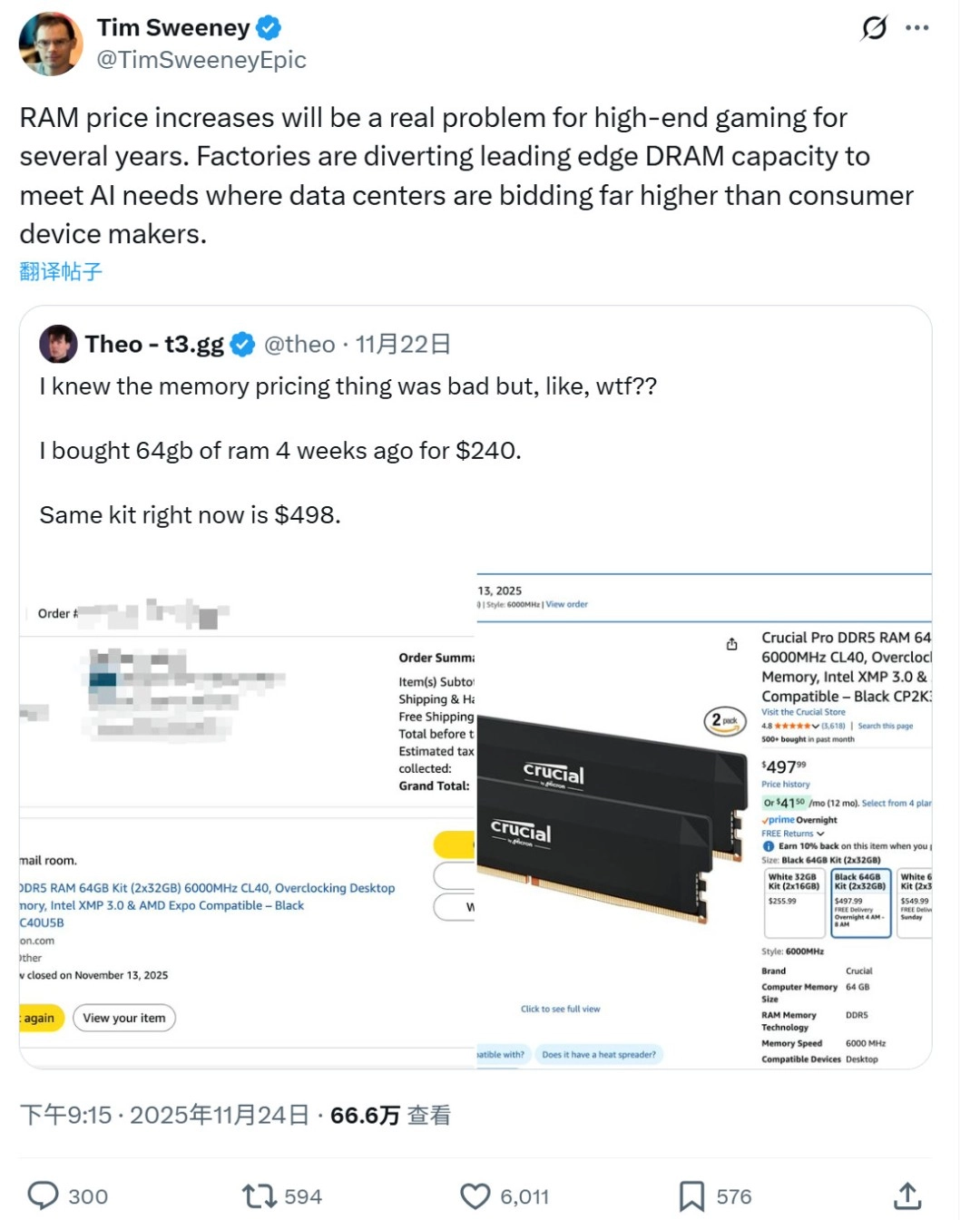 64GB内存目前的价格快要追上RX 9070XT显卡了,甚至比一台完整的PS5还要贵。