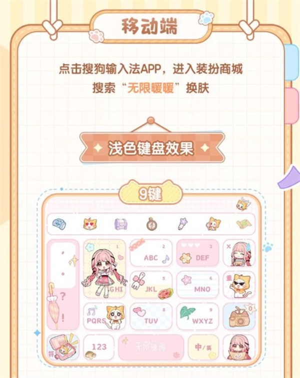 《无限暖暖》与搜狗输入法的联动定制皮肤已于今日正式推出。搭配师们无论是在手机端还是PC端,都能换上这款全新主题键盘,让暖暖在每一次输入时都陪伴在你身边。