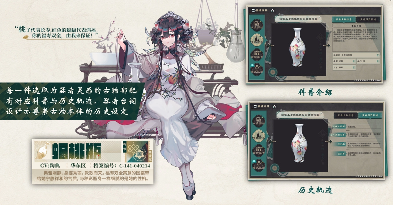 自 2024 年正式上线起,《物华弥新》便始终秉持着立足中华传统文化进行创新表达的理念,积极呼应国家对于新时代文化建设的需求,全力传播中华传统文化,致力于在年轻人群体里增强文化自信。在上线之前,这款游戏凭借严谨的文物考据、将器者拟人化的设计以及多元的叙事手法,成功地把《千里江山图》《雪景寒林图》还有《蝠桃瓶》等国宝级文物,转变为深受玩家喜爱的角色,并且借助剧情与互动玩法,向玩家传递这些文物的历史内涵。