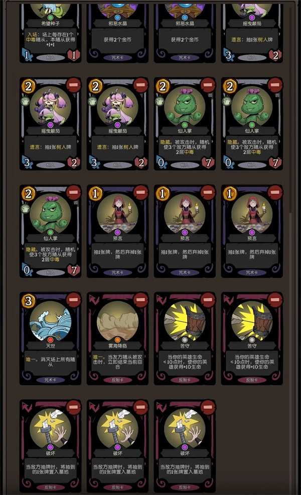 仙人掌堪称清理对方场地以及拖延时间的得力助手,茄子不仅能够用于拉牌,而且还能加快光合作用的进程,另外还有苦收与雾可以用来保命。最佳策略是利用灭世来清理对方场地,紧接着打出三只白龙即可。