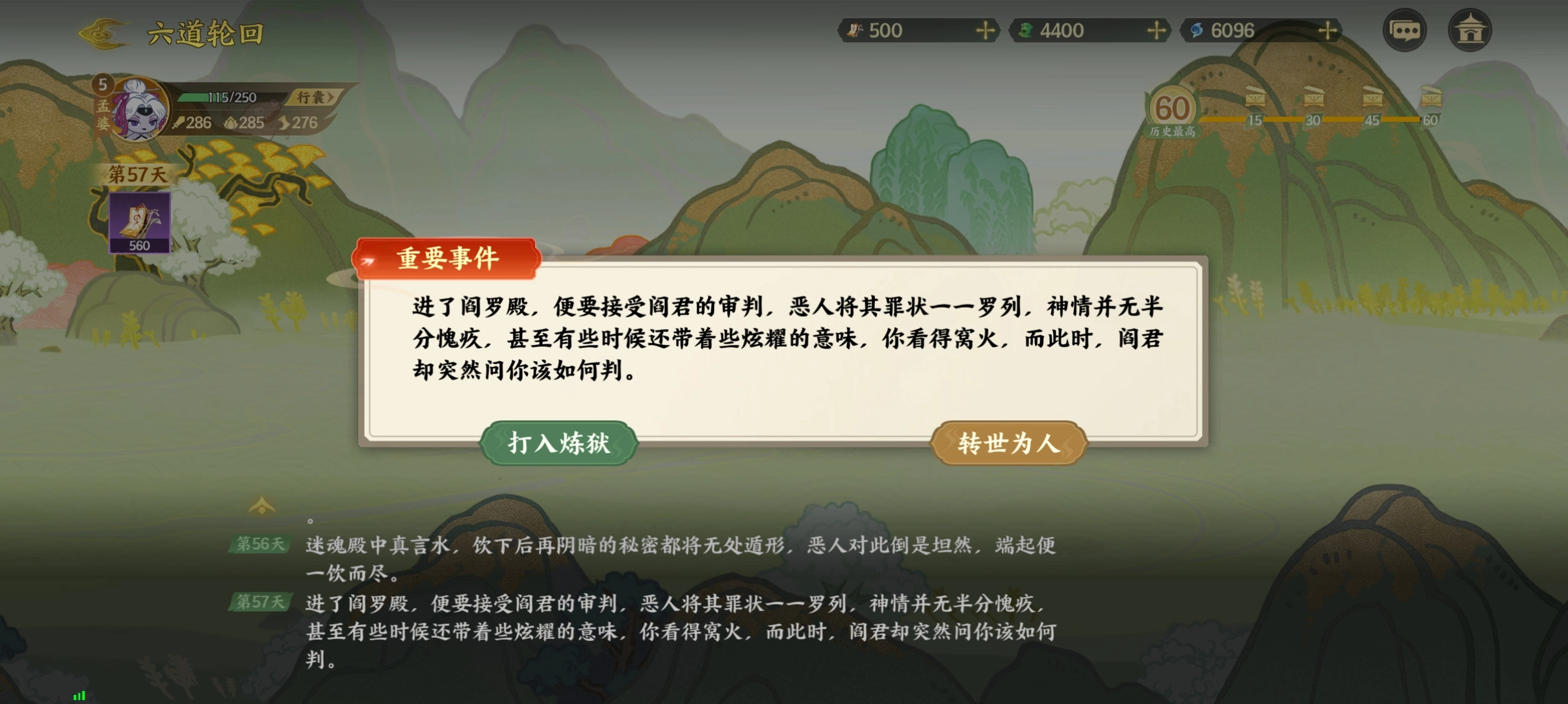 这里选择转世为人,打入炼狱会失败