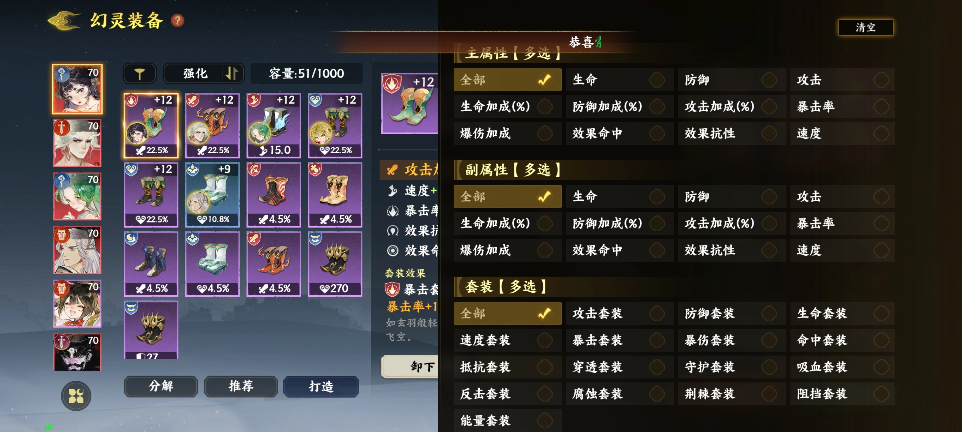 当后期玩家的装备数量大幅增多,在寻找满足自身需求的装备时面临困难,这个功能便可发挥作用。玩家只需直接勾选自己所需的词条,通过筛选,就能迅速找到用于强化的目标装备。