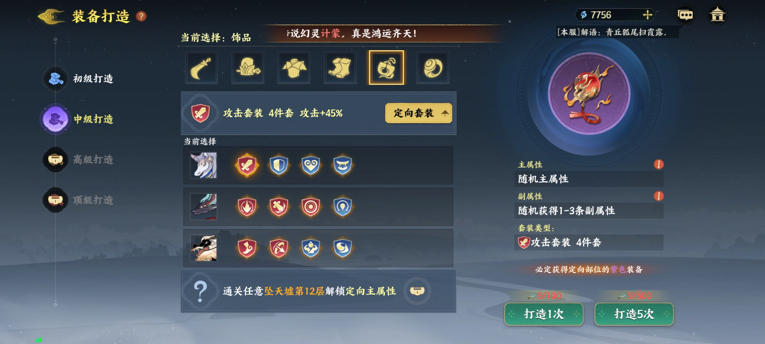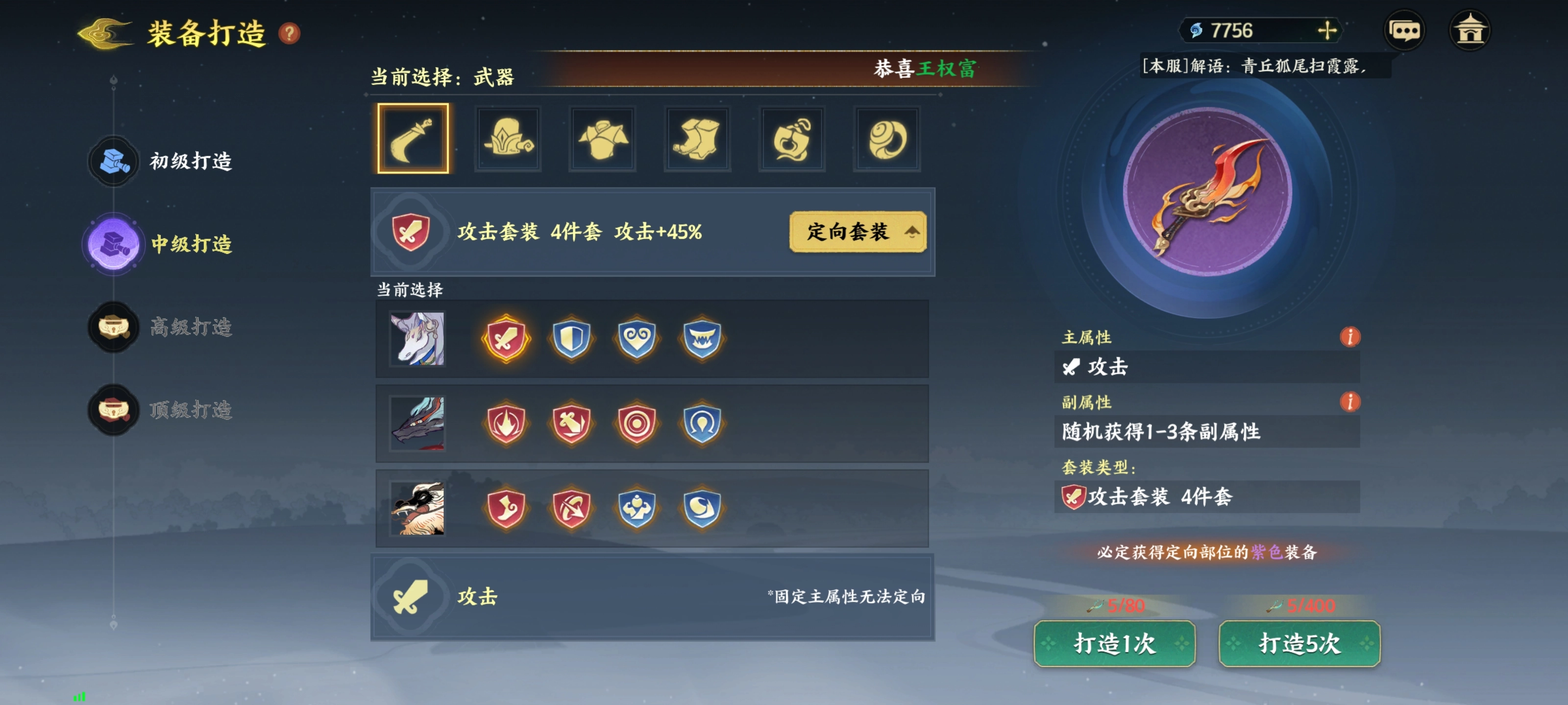 前期初级和中级打造相对容易,选好对应的套装之后