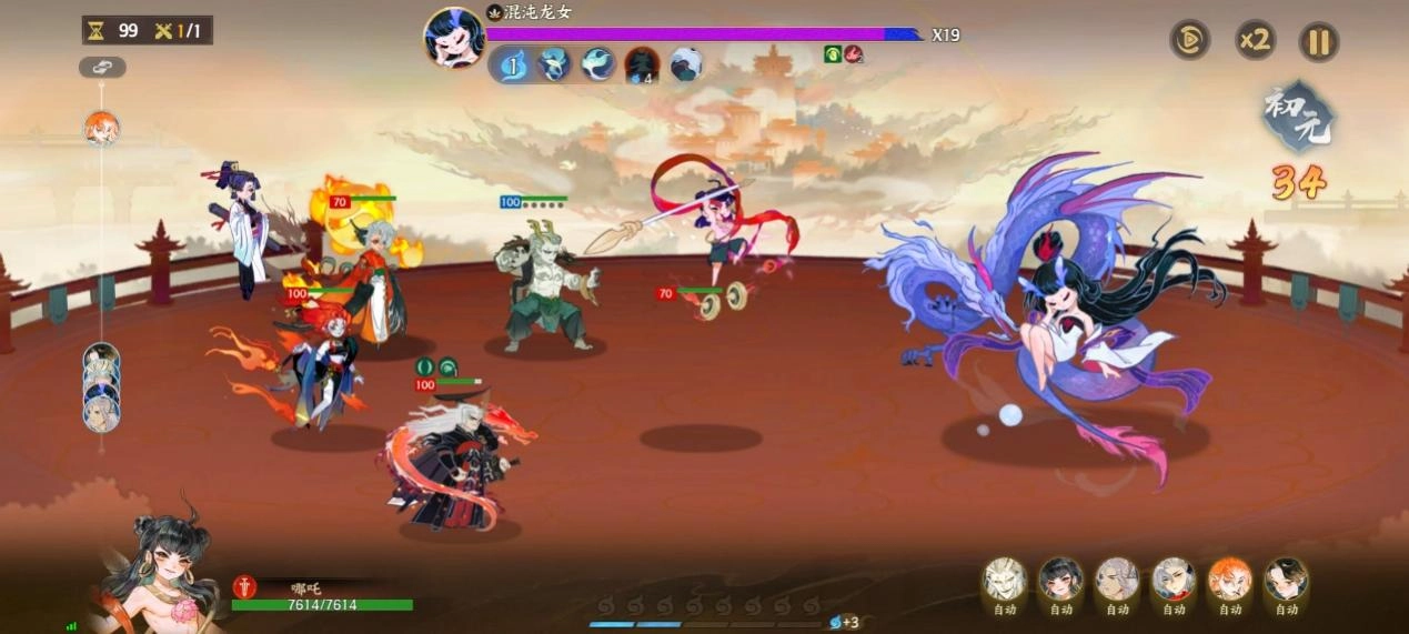 旱魃率先出击,令敌阵士气衰落,金乌燃起火焰,焚烧八方;计蒙与孟婆守护军阵右翼,哪吒和龙女勇猛地弑神,冲破苍穹;待到始皇登场,终局之时一锤定音,奠定乾坤!