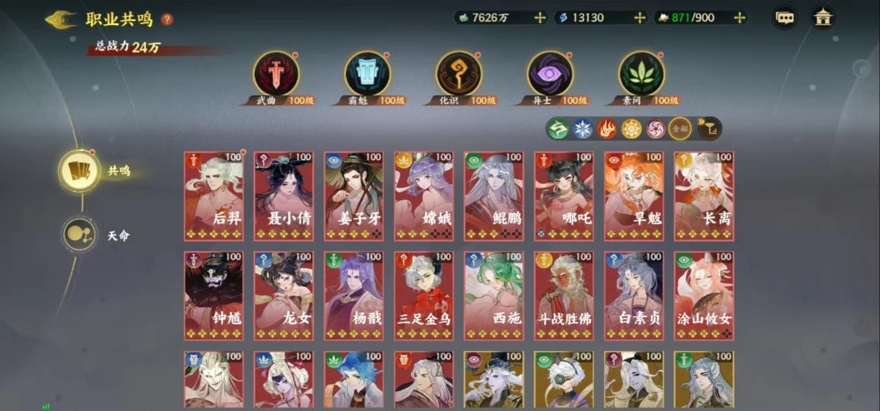 实现职业共鸣最大化:借助“共鸣系统”,共享同职业的等级与天命技能,将资源集中用于培养核心幻灵,从而降低整体养成成本。