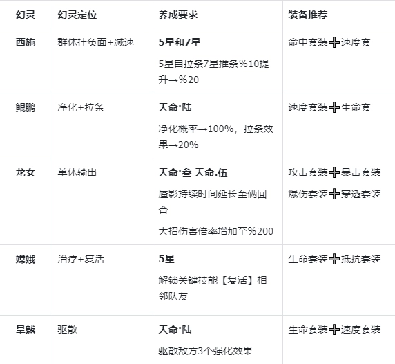 低成本高收益:优先选择 3星起用、5星质变的幻灵,避免依赖高星或氪金限定角色。