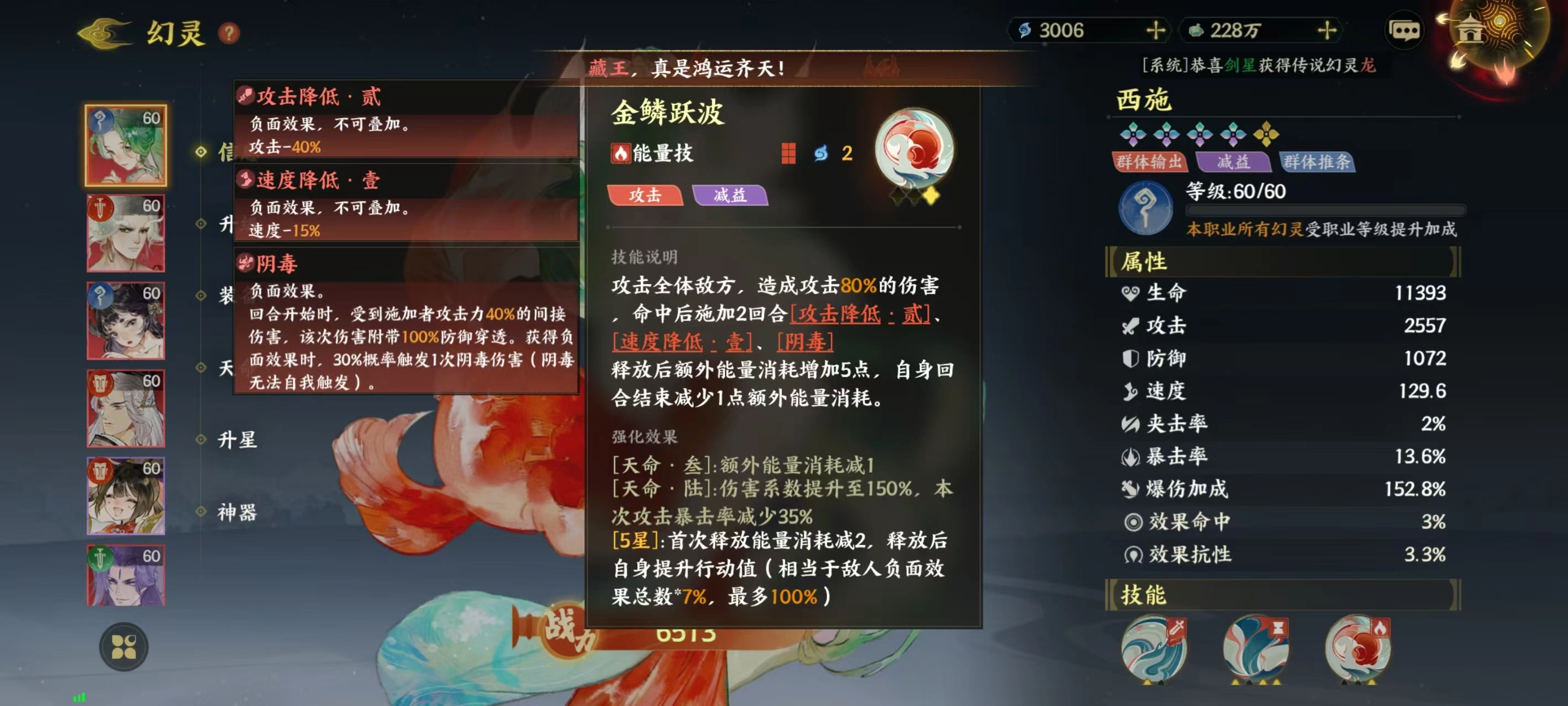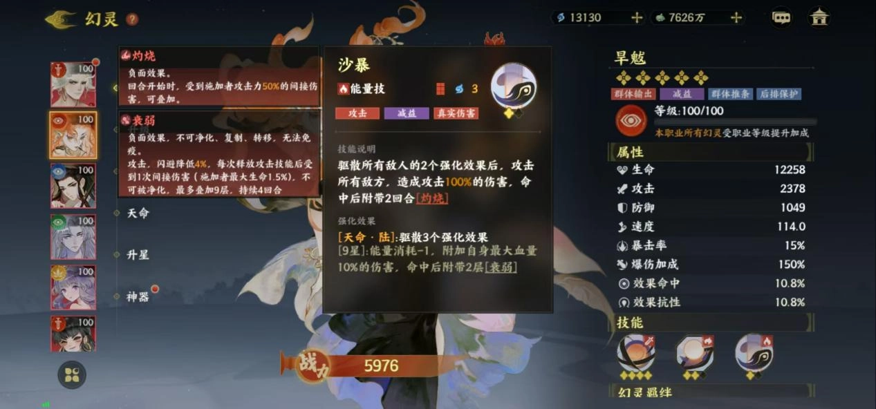 4. 旱魃(对策核心要点): 【天命陆】增强驱散效果,精确地消除敌方关键增益状态(像强力攻击Buff、护盾这类),使敌方的爆发点失效。