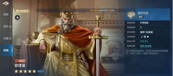 查理曼的强大实力不容置疑,仅凭一己之力就能扛起智力队的输出大梁,而且其拆解所得的技能,更是极为强势的顶级技能之一。即便不打算培养这个角色,只要抽到就相当于赚了。