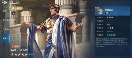 下面,对马克安东尼不了解的小伙伴,就来看看马克安东尼的技能与搭配吧。