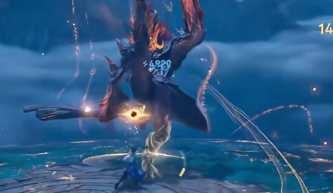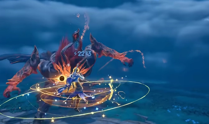 角色拥有一个名为逐星归尘的技能。使用该技能后,角色会释放自身剑气。成功击败对手后,能产生减速效果。较为独特的是,若场景中存在火焰或水域,便可借助剑气,使火焰叠加灼烧伤害,让水域叠加减速伤害。如此一来,就不只是单纯击中对手,还能造成相应的伤害。