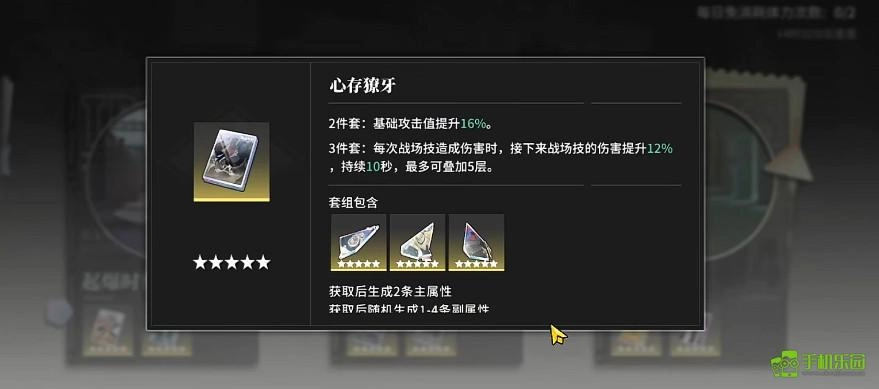 其次,“心存獠牙”刻印套组的加成效果会随持有件数增加而提升,两件套与三件套的加成强度存在差异。当该套组基础星级达到六星时,其效果格外受玩家青睐——毕竟它对暴击属性同时提供概率与伤害数值的双重加成,这种刻印在最终攻击加成上展现的能力,是许多其他套组难以比拟的。因此,若输出角色需要这类效果,选择“心存獠牙”刻印套组会是不错的方案。