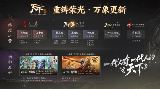 这些数据足以证明,玩家们对“天下”这个IP的感情依然存在,在他们内心深处,其实一直期待着“天下”的再次崛起,期待着那个激情澎湃的黄金时代能再次归来!