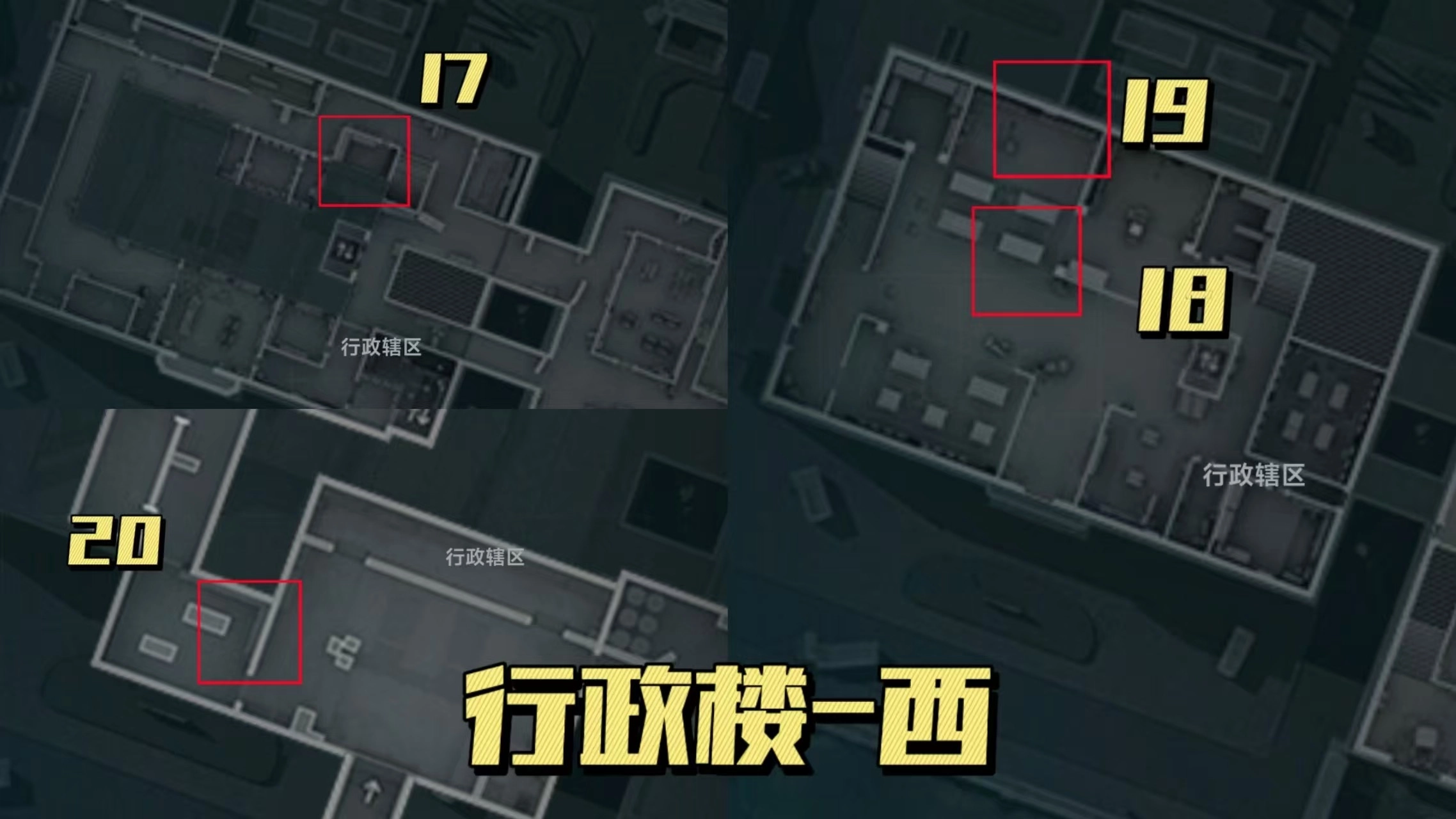 17号点位同样不太容易找到,得先到一楼的服务器区域,借助旁边的箱子跳跃攀爬才能上到服务器,渡鸦之眼就刷新在那上面;18号点位则在服务器对面黄色照明灯旁边的高台上。