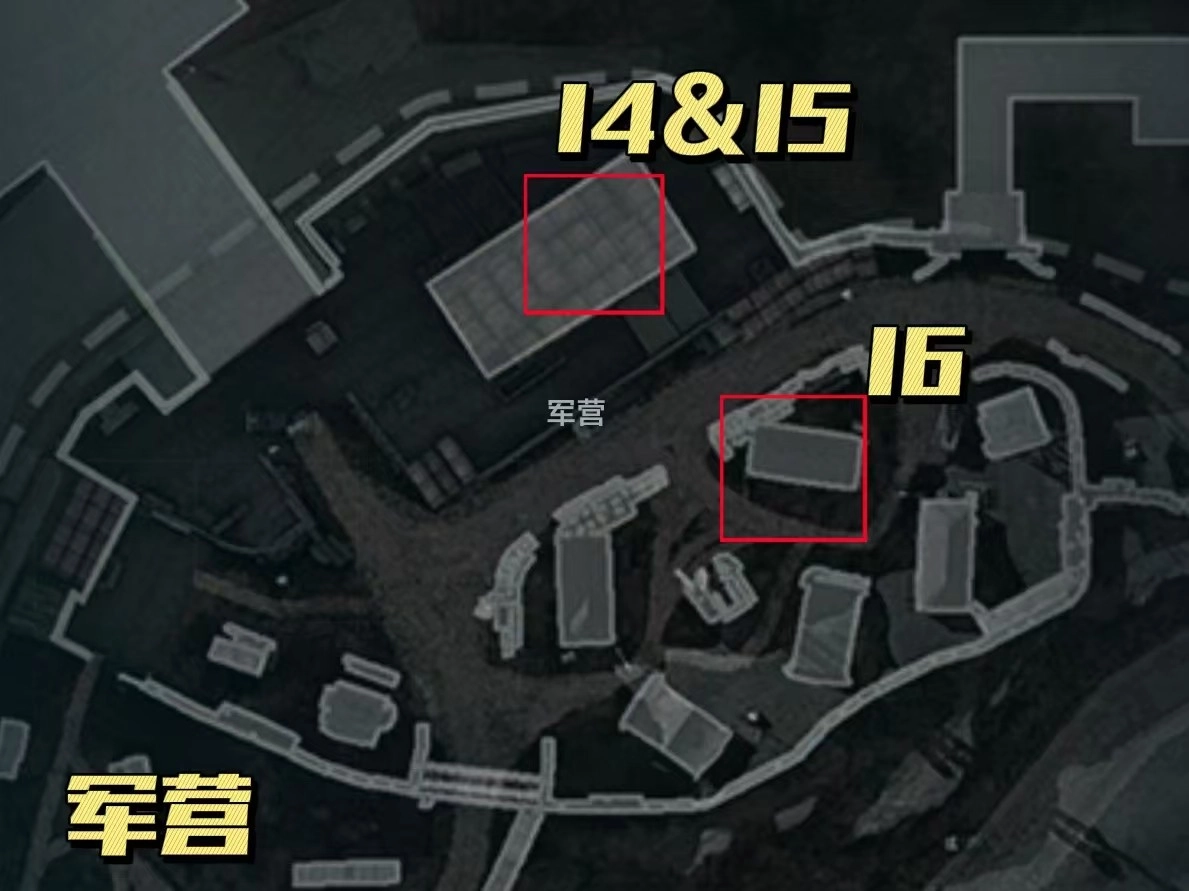 接下来我们直接前往军营二楼,14号和15号点位距离较近。先找到床铺正对面的木制大桌子(桌上会刷新小保险),渡鸦之眼就藏在桌子下方的空洞中;另一个点位则在床铺旁的红色塑料框里(框子对着一张白色小桌子)。
