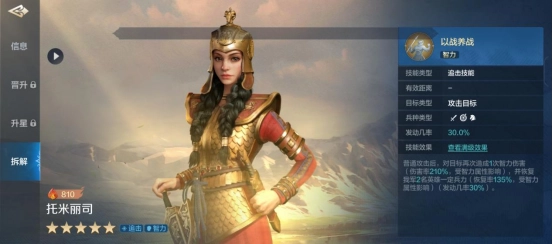 在技能搭配方面,托米丽司建议着重选择以提升输出为主要目的的技能,无论是增伤技能还是追击输出技能都可以。像“加冕”“天下当倾”“以战养战”等,都是颇为不错的选择。
