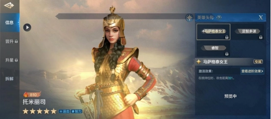 马萨格泰女王:在统帅位时,攻击距离加1。(进阶效果:前三回合获得先手状态)