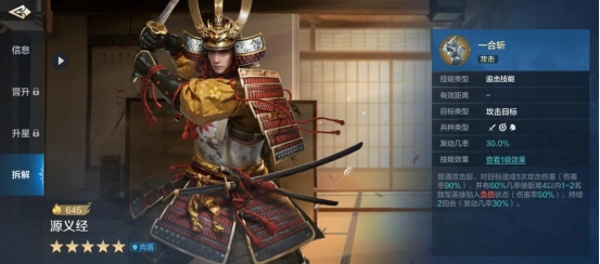 源义经所率兵种属于近战类型,攻击距离较为普通,仅为2,其定位是肉盾。在面板数值上,源义经表现十分出色,初始防御高达104,攻击也能达到80 。