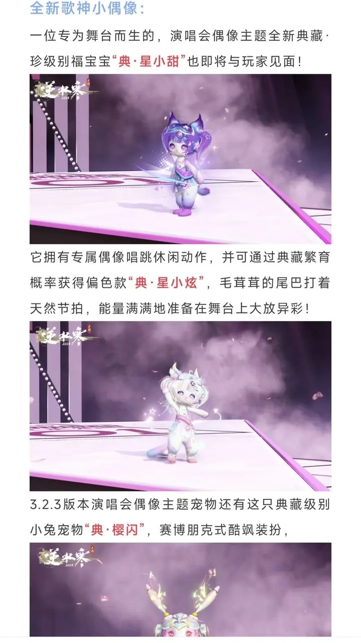 本次更新以演唱会偶像为核心主题,带来了数只外观设计别具一格的典藏级宠物。
